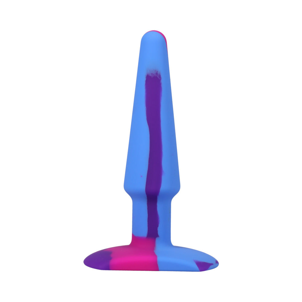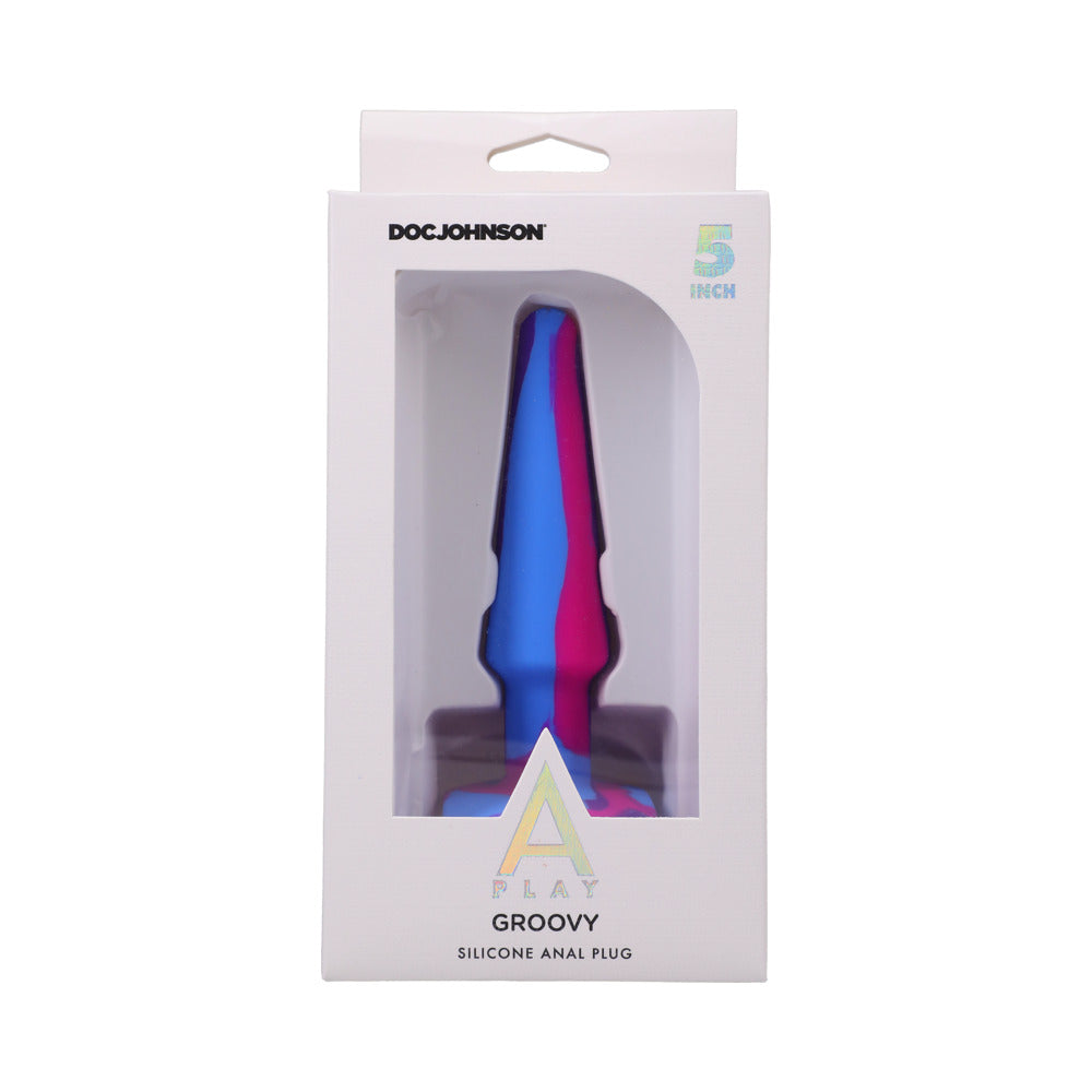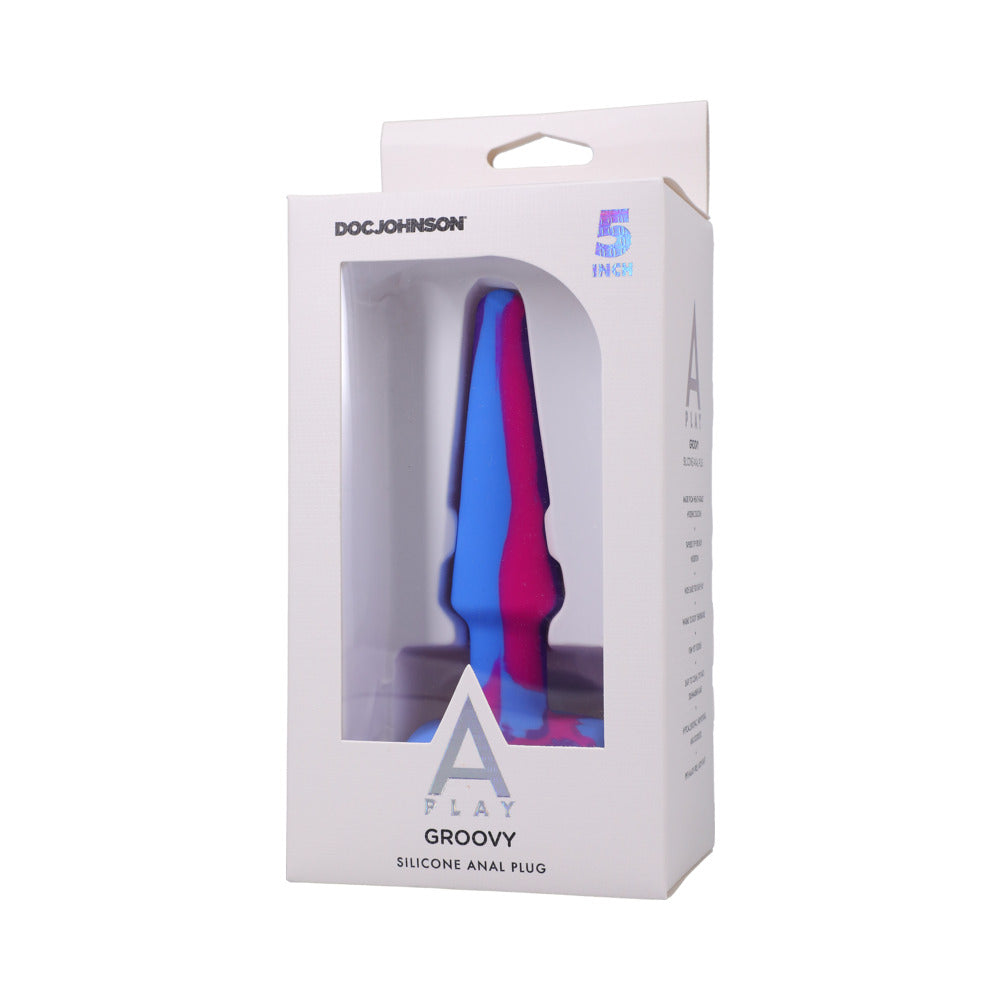 The A-Play Groovy is a soft multi-colored anal plug made of health-grade silicone. Its tapered tip and wide base make for safe comfortable play and its firm-yet-flexible feel allows for a little wiggle. Each plug is unique and has its own variation of the color pattern.- Made from Health-Grade Hygienic Silicone