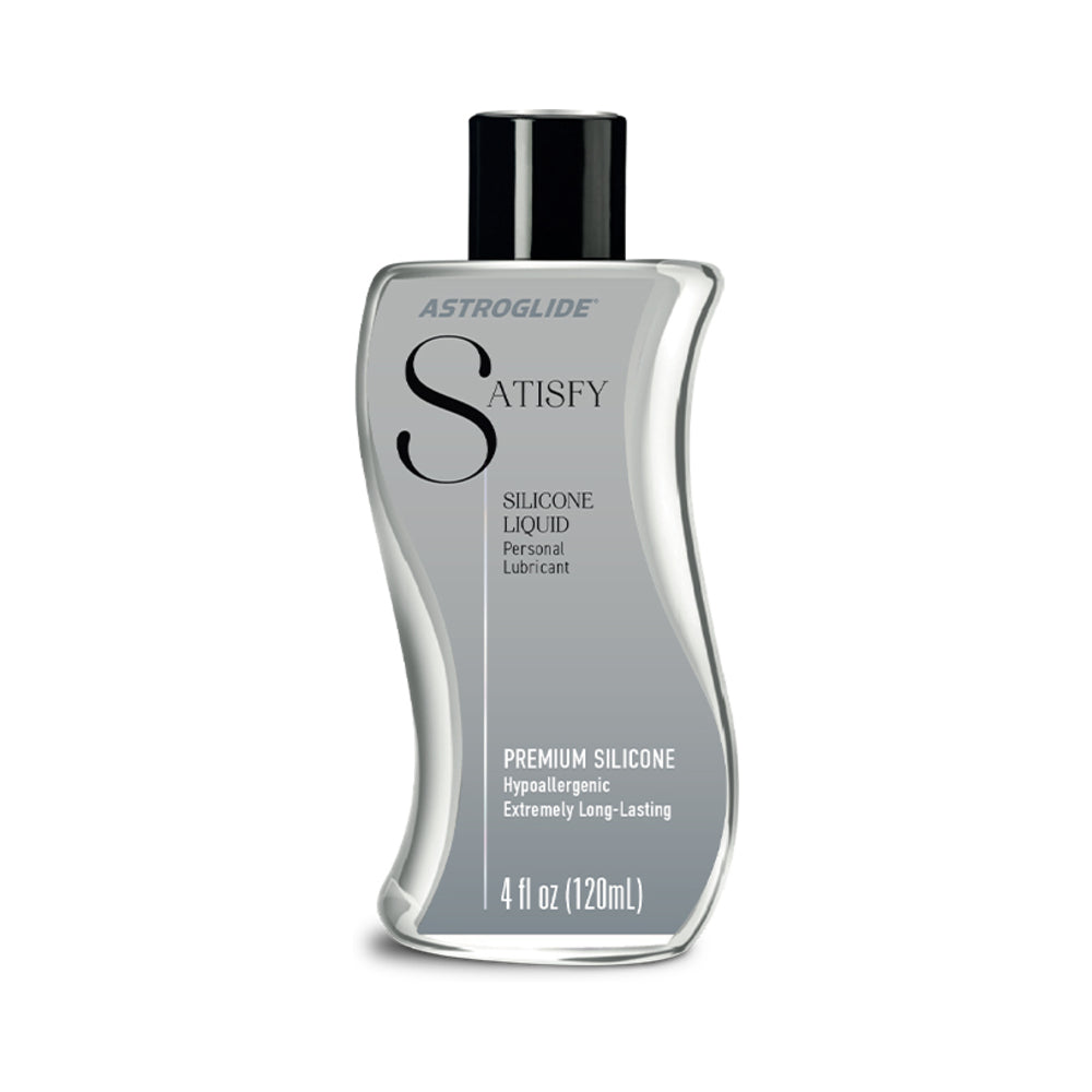 New Astroglide Satisfy designed for pleasure with a formula you can trust.From a long steamy evening in the hot tub to a morning quickie in the shower thereís never a dull moment with our waterproof and hyper-slick premium silicone lube. This personal lube lets you take the fun beyond the bedroom and into the water where you donít have to worry about leaving a stain. Made with a unique blend of high-quality ingredients our silky-smooth formula feels great on skin and is perfect for keeping the play going and pleasure coming for hours.