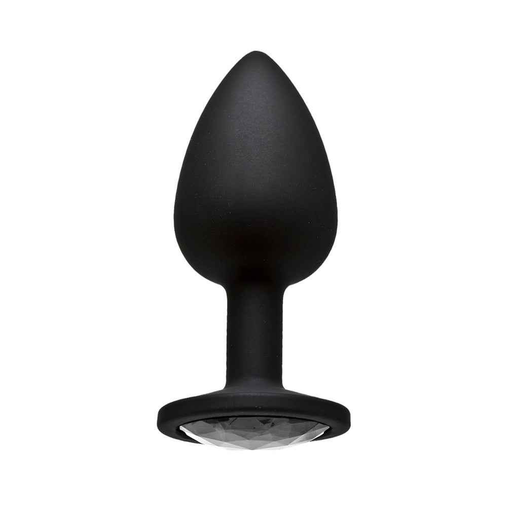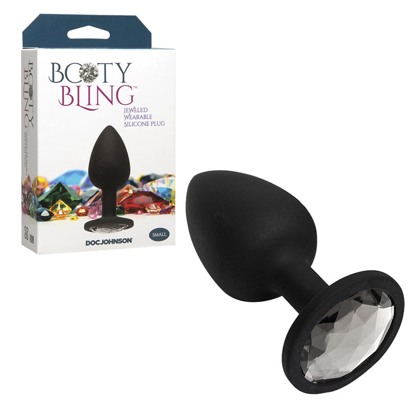 Add some beauty to your booty. Color sparkles brightly and contrasts with the black silicone to visually stimulate your partner and Booty Blingís flared base ensures safe play. The tapered tip thin stem and classic spade shape of the pliable health-grade silicone plug makes Booty Bling feel as good as it looks. Measures 3 in. long 2.6 in. insertable by 1.2 in. diameter.
