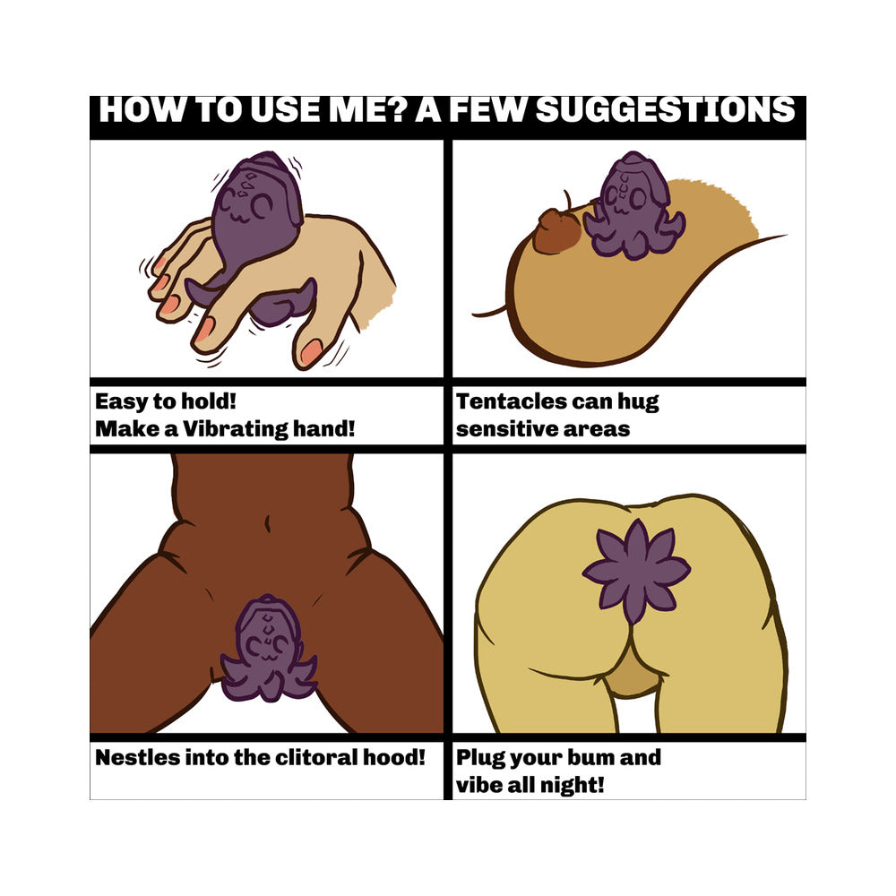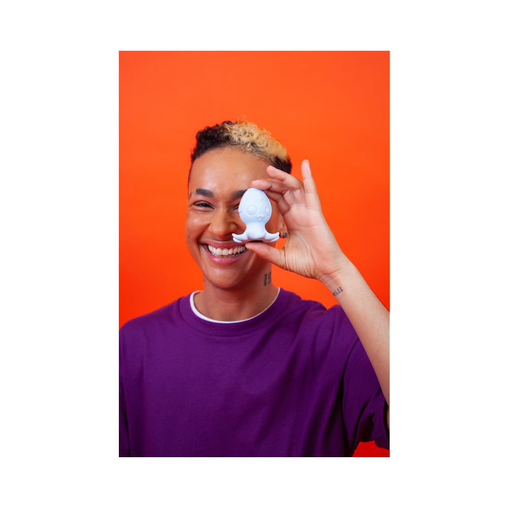 Princette Puppypus comes from a planet that is entirely covered in water and so they love it when things are wet whether from your body or your favorite lube. Our Princette makes a great vibrating butt plug and is also so much more. They make a great stand-alone vibrator with a ring of independently buzzing legs on one side and a larger curved vibrating head on the other. Both the legs and the head make this Royal We easily grasped by all hands and can slide between fingers for an open-handed explorative grip. Princette Puppypus is a versatile and euphoric friend.