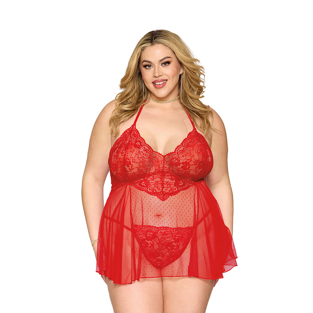 Dreamgirl Lace Babydoll and G-String Red Queen Size