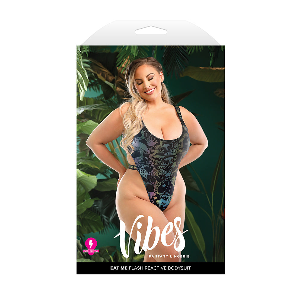 Fantasy Lingerie Vibes Eat Me Flash Reactive Mushroom-Print Bodysuit Queen Size