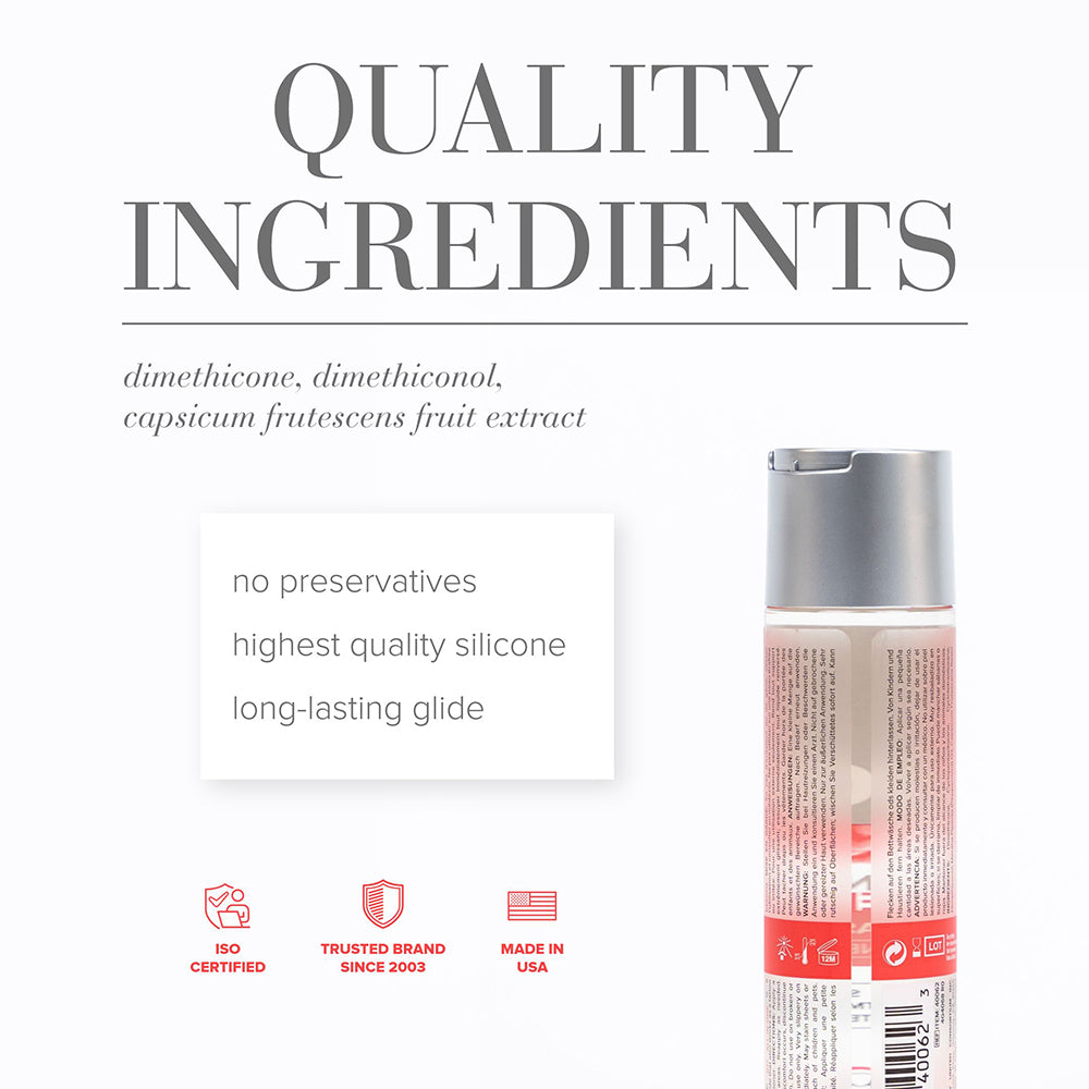 JO All-In-One Sensual Massage Glide Warm Embrace is our premium silicone-based massage formula offering a long-lasting buttery feel and a gentle warming sensation. Smooth and satisfying it dries down to a matte soft-touch finish. One drop of All-In-One Sensual Massage Glide is equal to ten drops of traditional massage oil so a little goes a long way! Perfect for everything from full body deep tissue massage to erotic teasing it can even be used as a tattoo brightener and body conditioner so seal in moisture.