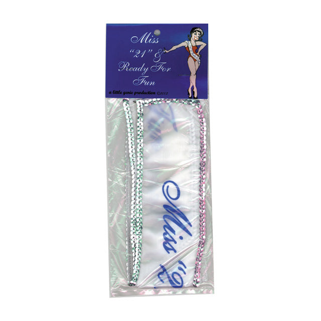 A sparkling addition to your birthday party wardrobe that is sure to enhance your night of fun! You'll definitely be the center of attention with this 5 foot long party sash. Adjustable to fit most party goers. For additional fun pin on candy or flowers. This will be an occasion that you'll never forget! Sequined trimmed.