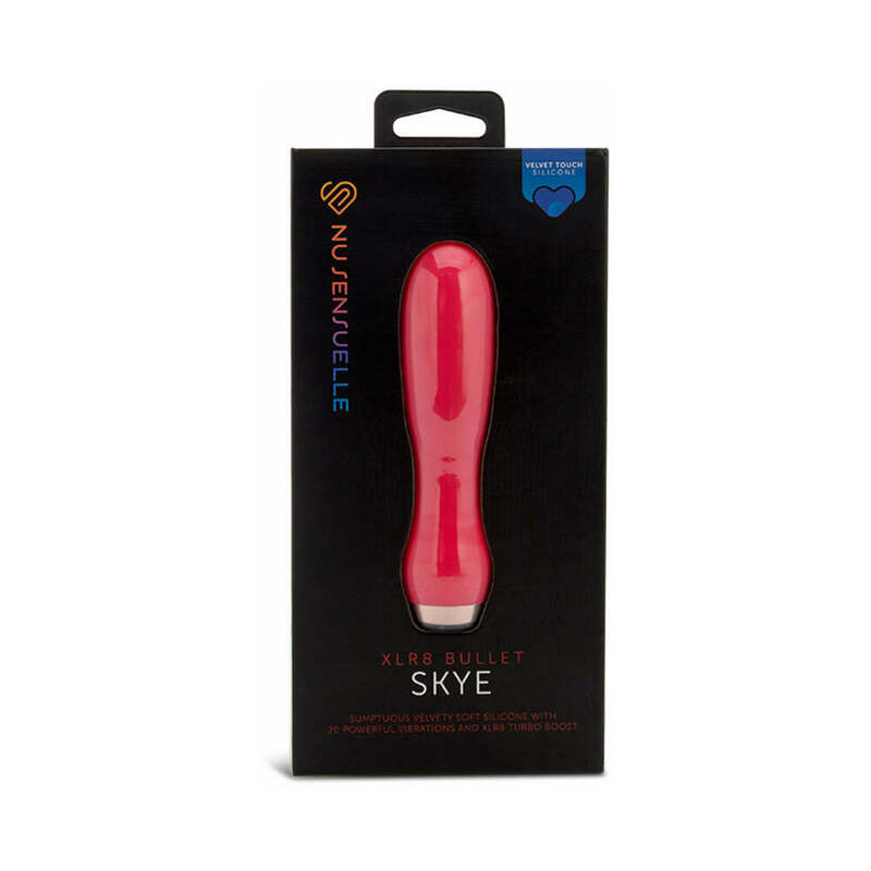 EXPERIENCE THE PINNACLE OF TOUCH and heightened sensory pleasure with the Skye XLR8 Vibe now enveloped in our luxurious velvet touch liquid silicone. This ultra-soft material offers a cloud-like sensation enriching every intimate moment. Meticulously designed for both internal and external play Skye's bulbous head ensures expansive coverage while its 20 innovative settings deliver unparalleled pleasure. For an exhilarating rush activate the XLR8 turbo boost and ascend into the pleasure stratosphere.