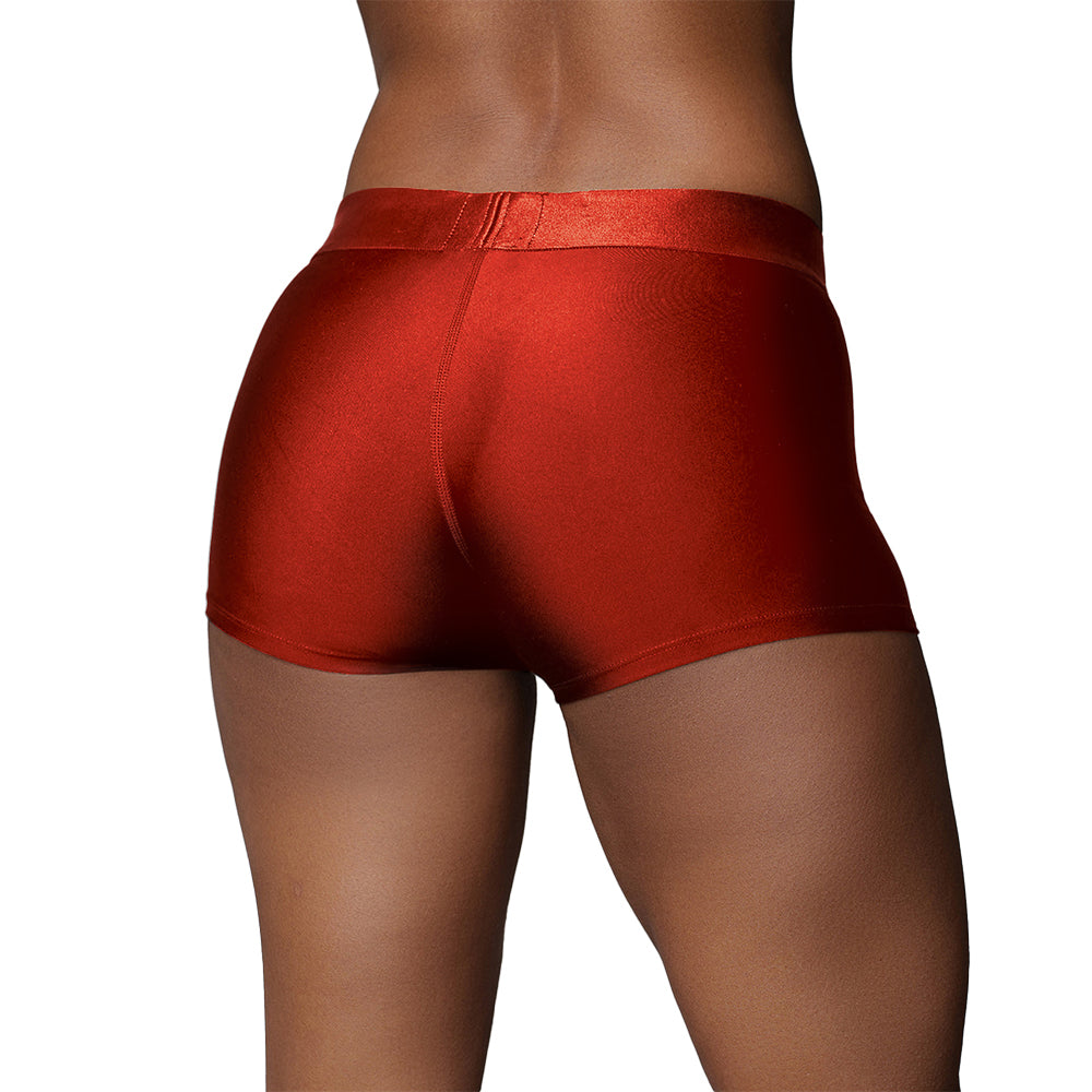 The Vibrating Strap-on Boxer's stylish design fits longer down the thigh.Simple yet elegant these strap-on panties are perfect for you and your partner. Don't worry about complicated straps and buckles just slip them on add the toy and enjoy. With a variety of styles shapes and sizes everyone will find their perfect fit. With the patent-pending O-Ring System almost all dildos and dongs will fit into this strap-on panty without the need of additional O-Rings. Each panty comes with a premium quality silicone rechargeable 10-speed vibrating bullet for extra sensations for you and your partner. Made of high-quality elastic compression material for a better fit comfort and performance. The lightweight breathable fabric will draw away moisture from the body ensuring that when things get hot you stay cool. Perfect for Packing Pegging and Penetration. Available in 3 sizes: XS/S M/L XL/XXL. 1-year warranty. Pairs perfectly with All Ouch! and RealRock Dildos and Dongs.
