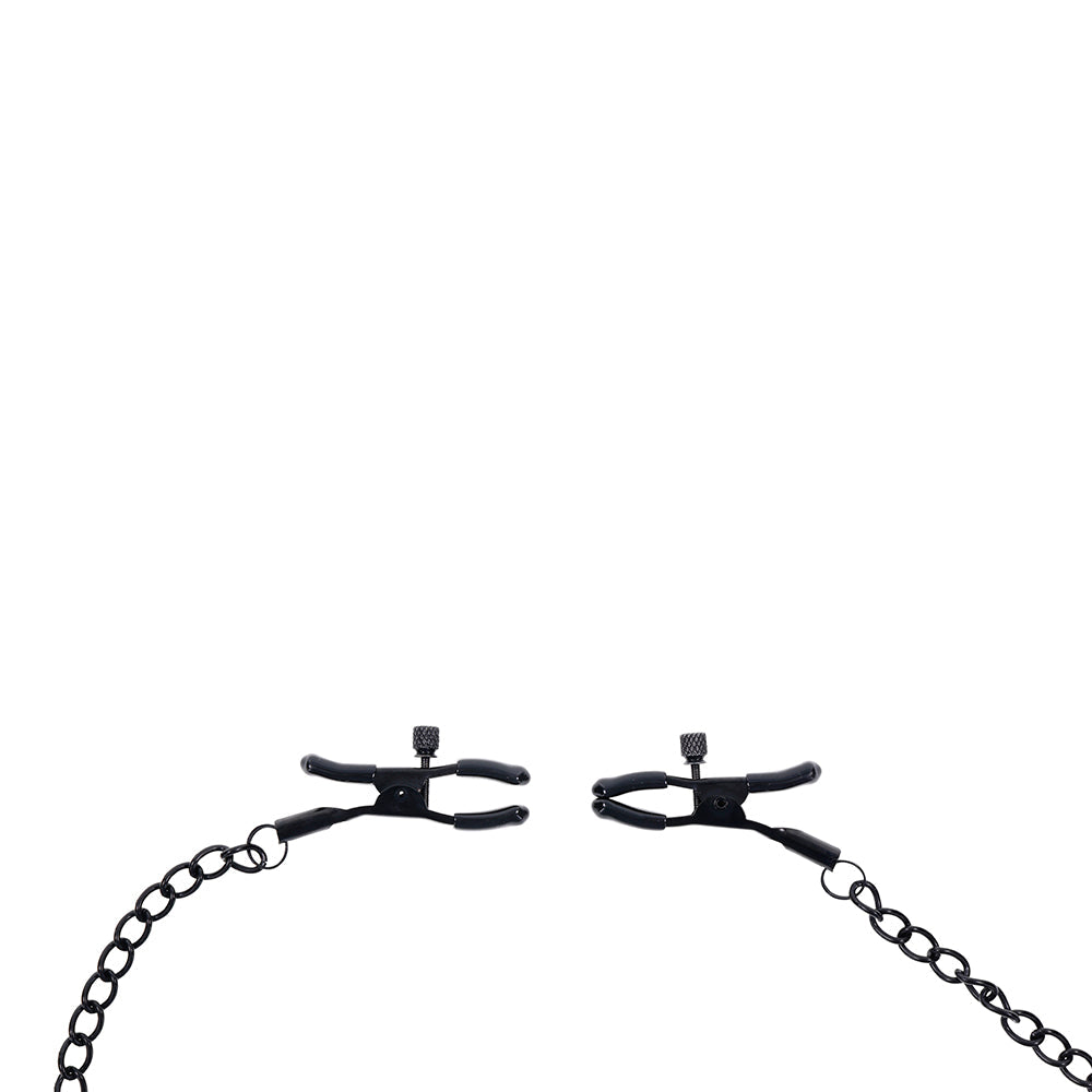 Includes: 2 Adjustable nipple clamps 1 Tweezer style clit clamp 1 Collar chain