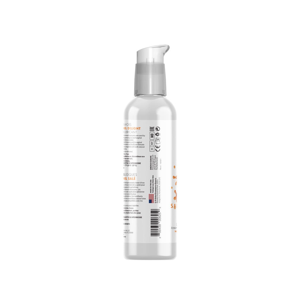 4-in-1 Playful Flavors promise playful pleasure in all its forms!Salted Caramel Delight surprises your senses with a tempting blend of sweet and salty. Apply liberally to indulge in a decadent salted caramel experience. Gently rub or blow on the lush liquid to release an alluring warmth. Or savor slippery goodness when added to a massage or used for lubrication. Salted Caramel Delight 4-in-1 Playful Flavors captivates and inspires all of your senses!