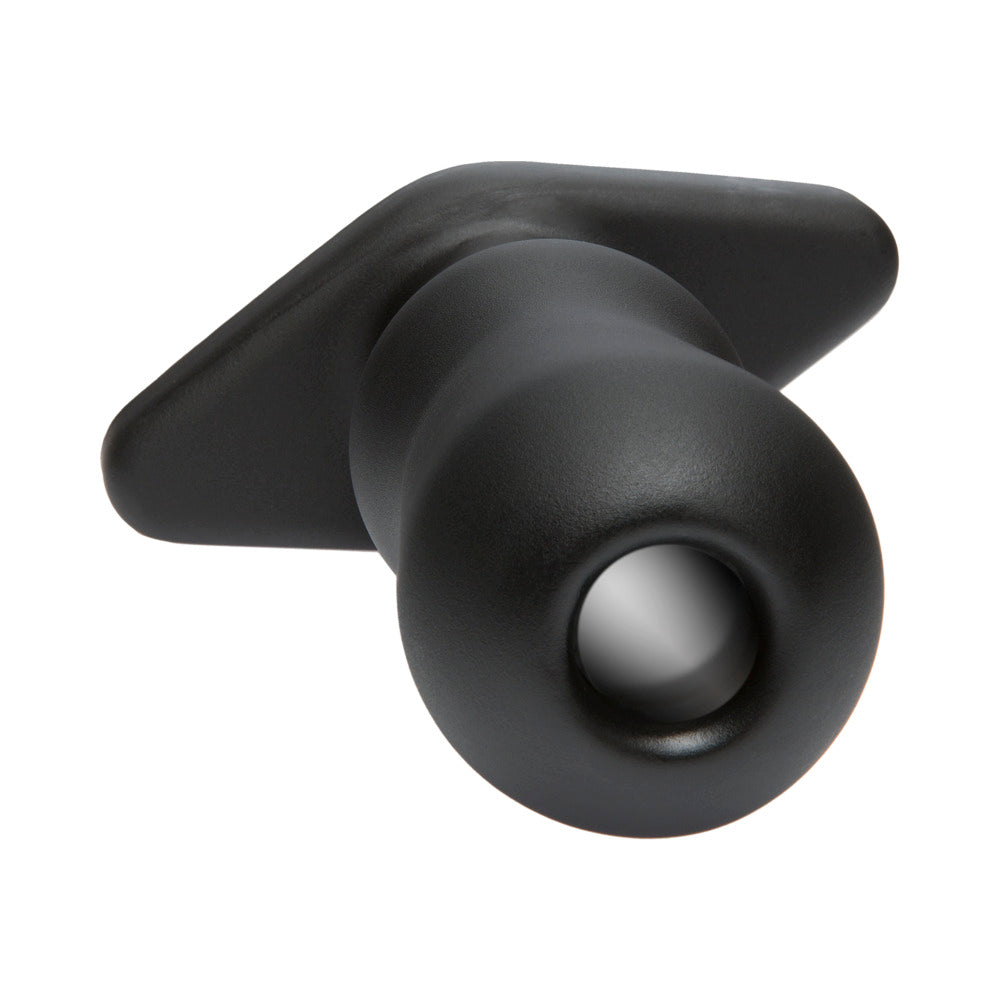 Explore the backdoor with this open-tunnel anal plug. Firm yet flexible it delivers the satisfying filling sensation of a regular plug but also features a hollow-bodied design allowing access. Insert fingers lube or even a vibrator right through the tunnel with a 1 in. opening. Thick cushioned material with a unique diamond-shaped base is flexible and designed for all day wearability. Antibacterial Sil-A-Gel formula. Total length 4.7 in. 4.3 in. insertable 1.7 in. width.