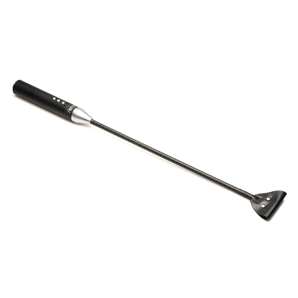 In your kinky scene you've introduced a new toy. It looks innocent at first glance but the uniqueness is in the experience not the way it appears. As you turn your submissive partner over to expose their round backside you tap the crop end lightly and warm them up. Then you give them a few quick whacks on their backside. Everything seems normal until you turn the e-stim on and begin to shock them gently and then more intensely! You hear them squealing in surprise and pleasure in no time!